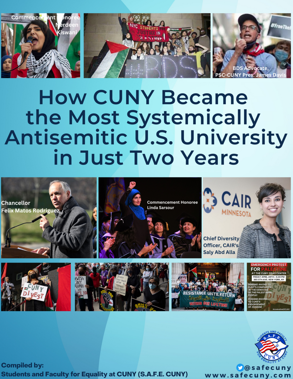 This report documents the 2-year, calamitous downfall of the City University of New York. From proud safe haven for the 1.7 million Jews of New York City, to a systemically antisemitic cesspool of hate, and an unsafe place for Jewish students and faculty members.